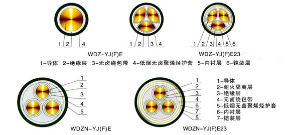 无卤素 :采用绿色环保绝缘层、护套及特制的隔氧层材料,不仅具有良好的电性能、物理机械性能,并且保证了产品不含卤素、解决了其燃烧时形成的"二次污染",避免了传统 PVC电线燃烧时产生可致癌的"二恶英"物质。